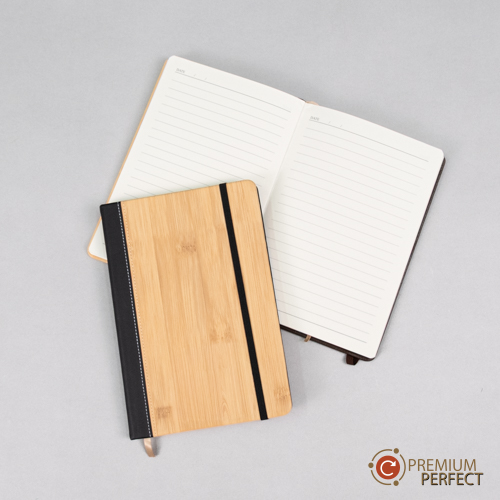 NO 033 สมุดโน้ตปกหนัง PU ลายไม้ไผ่ มีสายรัด ขนาด A5